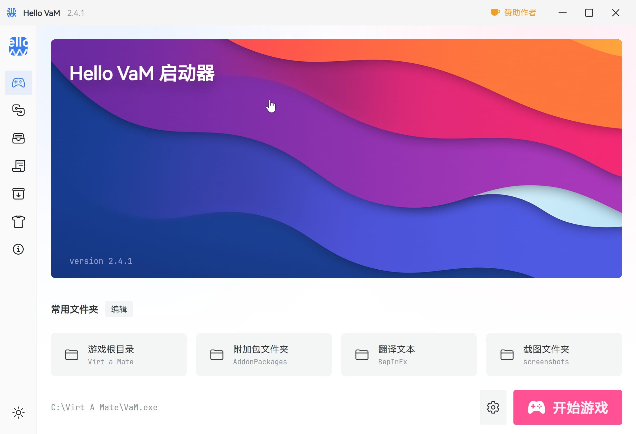 使用 Hello VaM 游戏启动器!这个工具是专为《Virt a Mate》而设计的,它能够帮助你更轻松地管理和启动你的游戏,同时提供了方便的方式来下载和管理游戏附加包和依赖项。